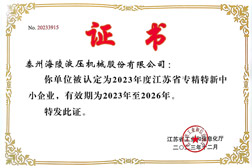 省級(jí)專精特新中小企業(yè)證書